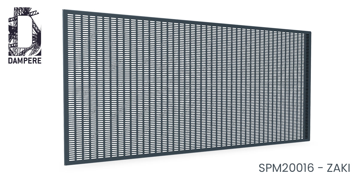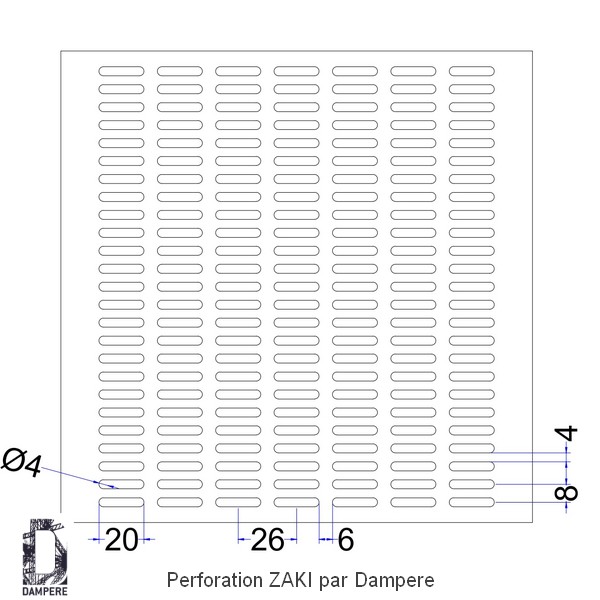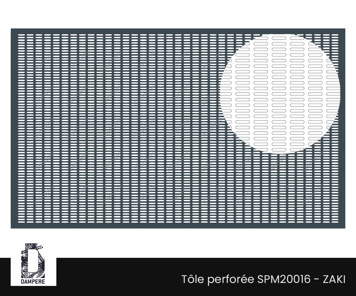 Tôle perforée ZAKI à trous oblongs rondelets disposés en ligne crée une grille de transparence douce.