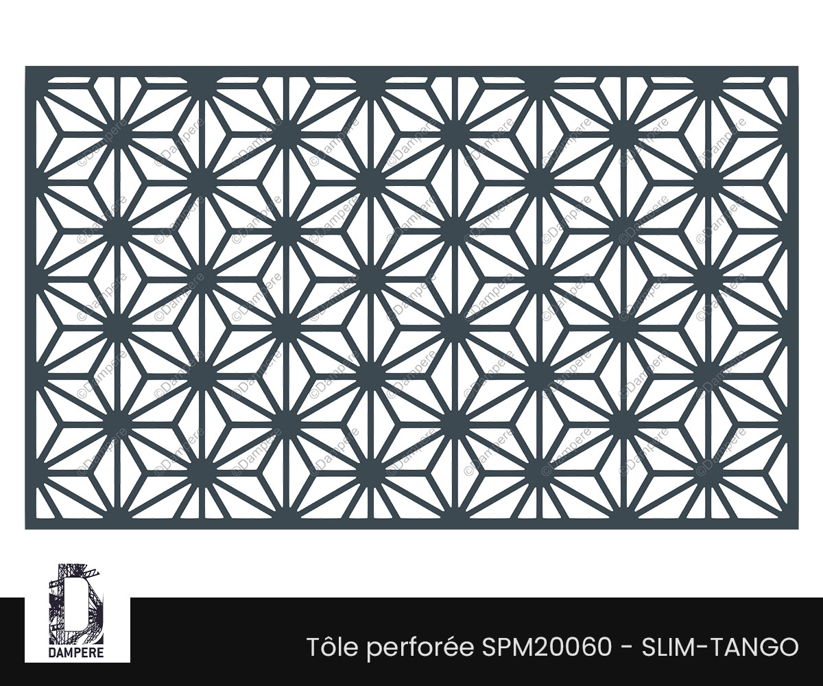 Tôle décorative composée de losanges disposés en orbite autour d'un point central créant un effet d'étoiles brodées