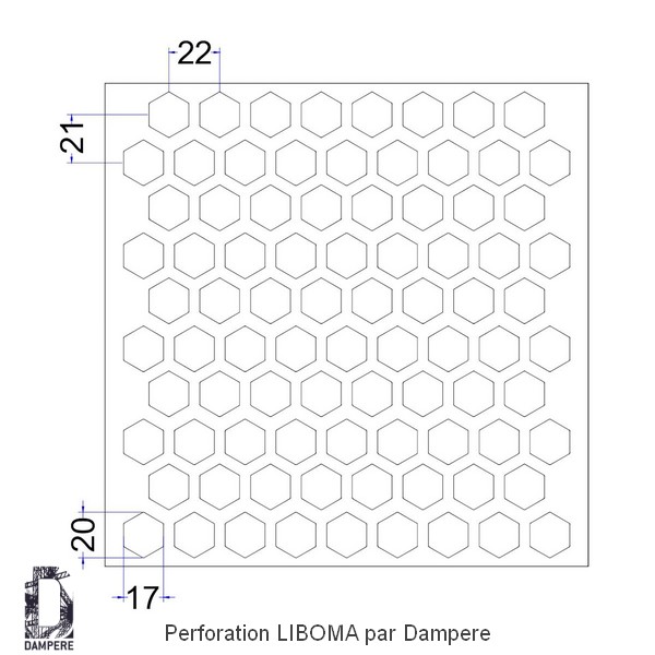 La perforation Liboma sert de grille de protection solaire ou de grille de soufflage pour des systèmes nécessitant un grand passage d'air. Cette maille sert aussi pour l'élaboration d'enceintes acoustiques.