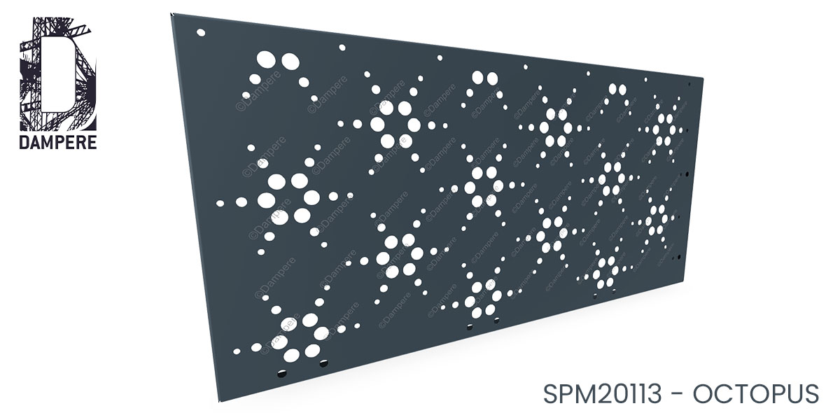 Ce modèle de perforation est particulièrement adapté aux projets d’aménagement urbain et paysager recherchant un motif discret mais structurant. En clôture de jardin ou en façade d’immeuble, la tôle perfo Octopus apporte une touche graphique contemporaine, tout en garantissant une occultation suffisante contre les regards extérieurs.