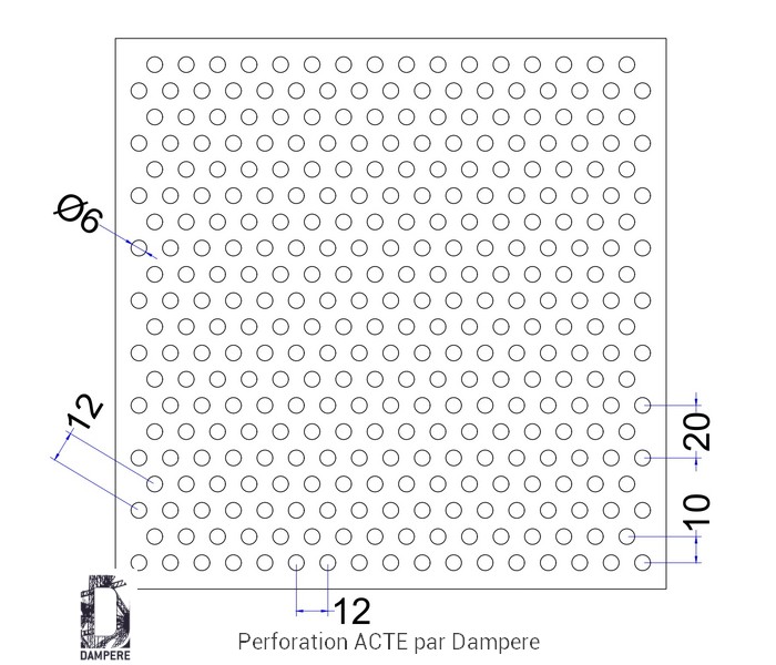 Tôle perforée R6T12 - ACTE à trou rond de 6 mm disposition en quinconce pour former une grille perforée Rv6-12 à transparence 22% de vide