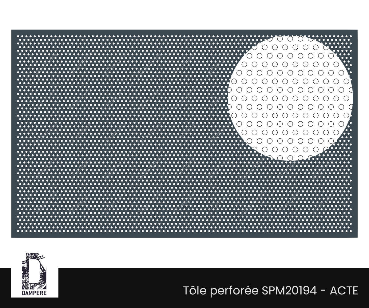 La tôle perforée R6T12 – ACTE est constituée de trous ronds de 6 mm, disposés selon une trame en quinconce à 60°, avec un espacement de 12 mm de centre à centre. Ce motif perforé, classé sous la dénomination Rv 6-12, se distingue par une transparence modérée de 22 %, offrant un équilibre subtil entre esthétique, sécurité et résistance mécanique. Contrairement aux modèles standards à forte transparence, la tôle perforée R6T12 ACTE préserve davantage de matière entre les perforations, assurant ainsi une tenue structurelle supérieure. Cette répartition équilibrée du métal renforce la résistance à la flexion et aux chocs, en particulier pour les panneaux en cassette de grandes longueurs autoportants. La tôle perforée R6T12 devient donc un choix pertinent pour les applications architecturales et techniques exigeant durabilité et stabilité. La disposition en quinconce permet d’obtenir une grille visuellement dynamique et fluide, tout en évitant les effets trop stricts d’un alignement en ligne droite. Grâce à sa transparence, la tôle perforée R6T12 – ACTE convient parfaitement aux habillages muraux, façades ventilées, clôtures urbaines, ou encore garde-corps décoratifs, là où l’on souhaite préserver l’intimité contre les regards indiscrets tout en permettant une certaine respiration de l’espace. Cette tôle perforée R6T12 est aussi idéale dans les environnements exposés aux intempéries ou aux sollicitations mécaniques, car le taux de transparence limite le passage du vent, tout en évitant l’effet "pince doigt", notamment dans les zones accessibles aux enfants. Sa solidité en fait également un excellent pare-vue résistant, utilisable sur portails, grilles de sécurité, ou protections de machinerie. Esthétiquement, la tôle Rv 6-12 affiche une présence forte et une résille métallique sobre, parfaitement intégrée dans des projets d’urbanisme contemporain, de design industriel ou de rénovation de façade. Prix indicatif de la tôle perforée R6T12 de 60 € et 75 €/m² en acier galvanisé épaisseur 1,5 mm pour une commande d’environ 100 m², selon le calepinage et la finition choisie. Pour réaliser une prestation plus économique, il faut s'orienter vers la Tôle perforée R8T12 standard.