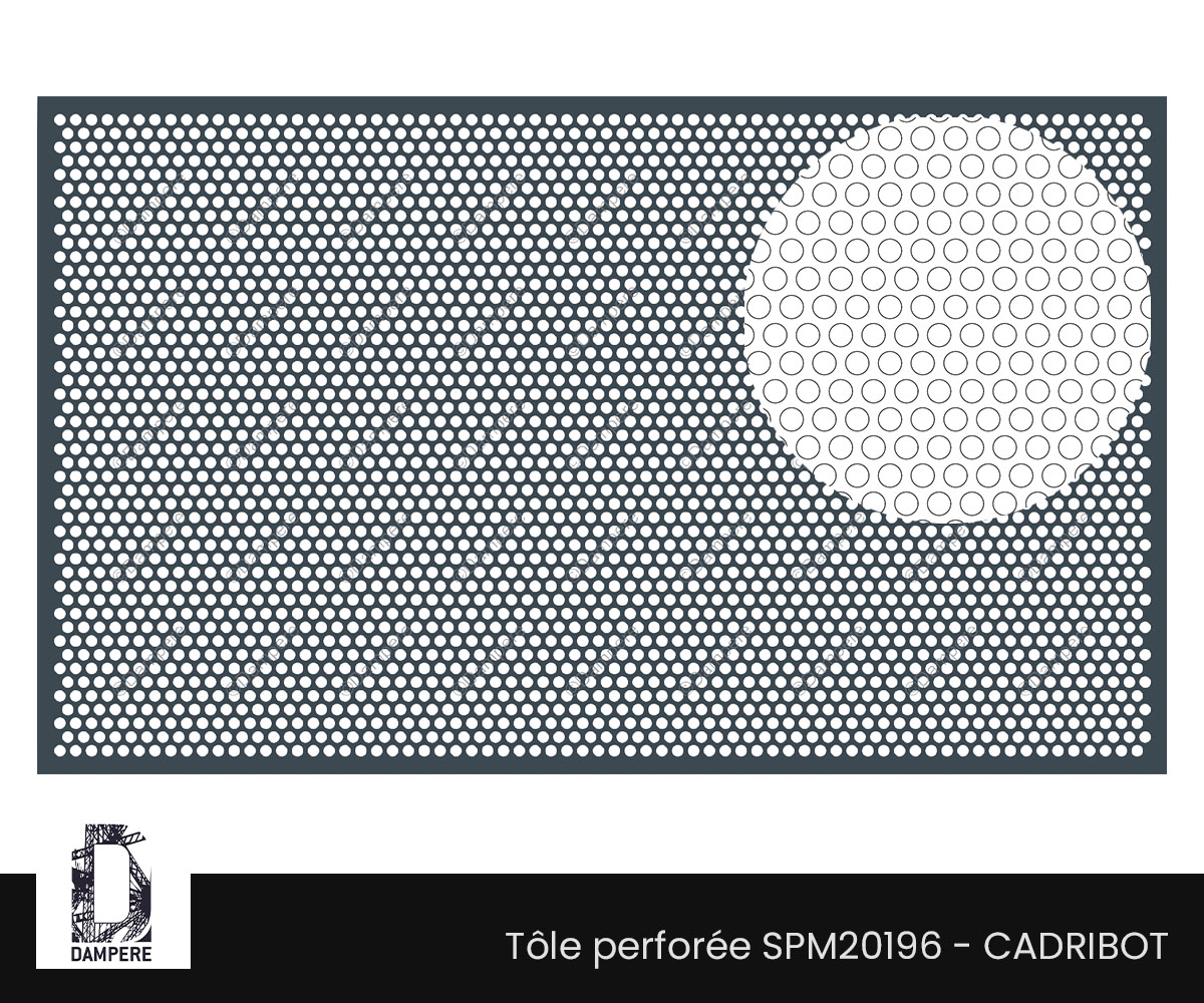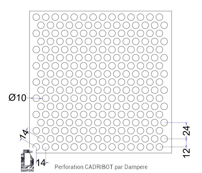 Tôle perforée R10T14 - Cadribot à trou rond de 10 mm disposition en quinconce pour former une grille perforée Rv10-14 à transparence 46% de vide
