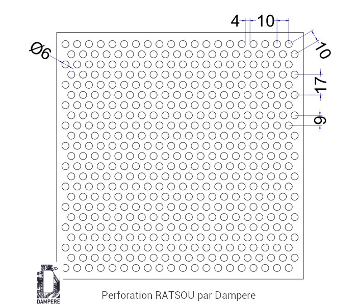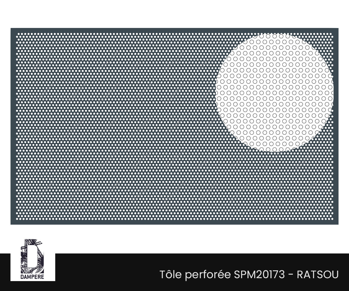 La tôle perforée R6T10 – Ratsou associe précision, résistance et discrétion visuelle. Son motif rond de 6 mm en disposition quinconce forme une grille fine et régulière offrant une transparence d’environ 32 %, idéale pour les projets nécessitant une protection efficace tout en conservant une ventilation maîtrisée. Par sa maille resserrée et homogène, la tôle perforée R6T10 est particulièrement adaptée aux applications intérieure où la robustesse, la sécurité et la sobriété esthétique sont essentielles : séparatif en école, grille aération pour gare, espaces publics, des bâtiments administratifs ou techniques, brise vue pour collectivité. La tôle perforée R6T10 s’utilise aussi en clôture urbaine une barrière solide et protectrice. Elle empêche la vision directe tout en laissant filtrer la lumière naturelle et les flux d’air léger. La perforation Rv6-10 répond aux exigences de sécurité réglementaire et garantit : – une protection visuelle et mécanique renforcée, – une transparence mesurée qui adoucit les vues vers l’extérieur, – et une rigidité suffisante pour des panneaux autoportants de taille moyenne sans cadre additionnel. Son motif perforé rond serré confère à la tôle un aspect technique et soigné. Avec une transparence d’environ 32 %, la tôle perforée R6T10 constitue un bon compromis entre occultation et ventilation. Elle limite les apports directs du vent et du soleil, tout en assurant la respiration naturelle des espaces qu’elle protège. Ce taux d’ouverture est particulièrement adapté aux parements de locaux de service, caches de ventilation, socles d’immeubles ou habillages de gaines techniques, où la fonction de protection doit s’allier à une lecture architecturale sobre. En aménagement intérieur, la tôle R6T10 trouve sa place dans le mobilier décoratif en bois.