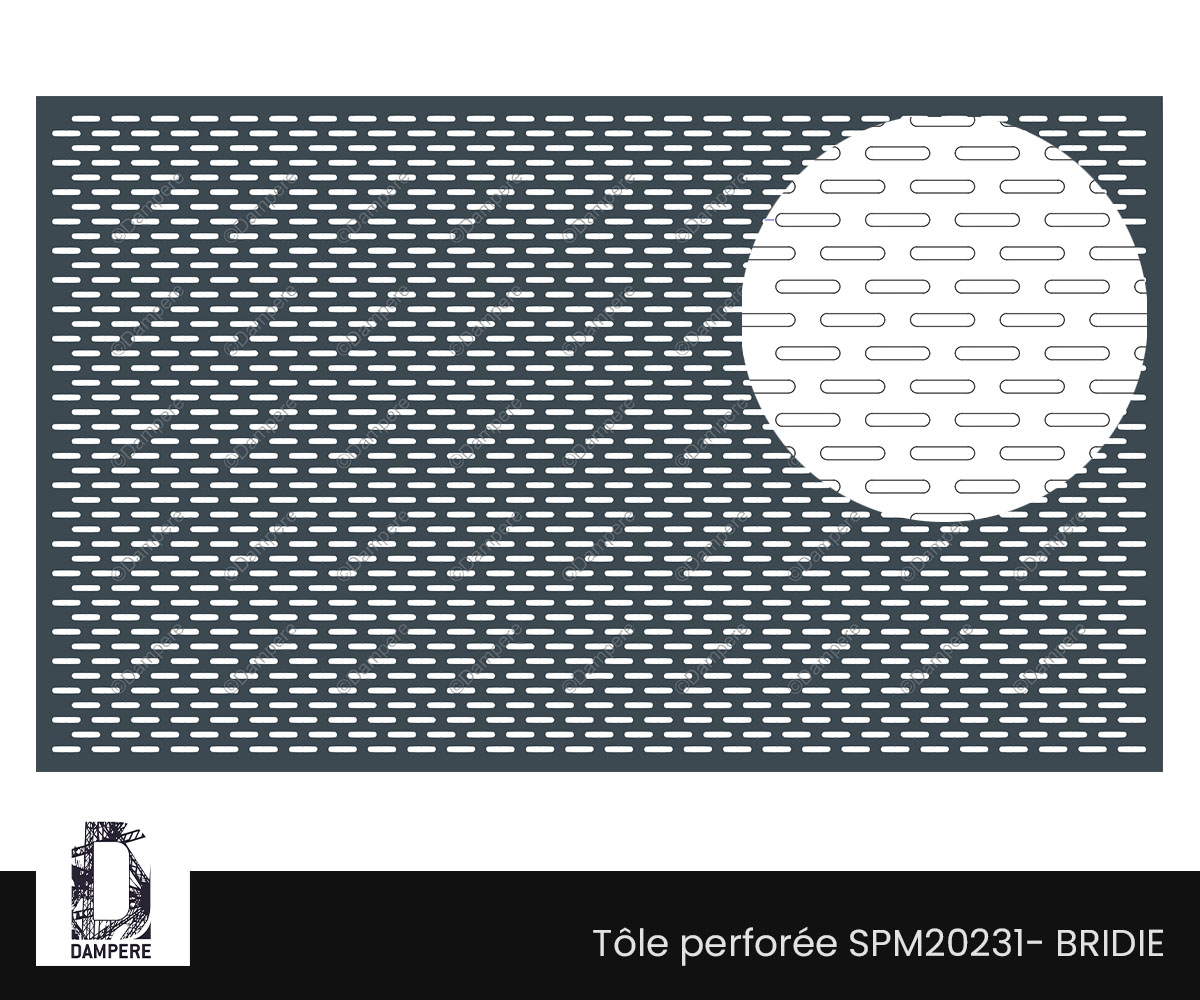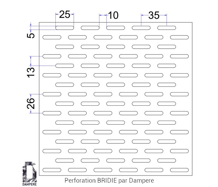 La tôle perforée LR 5×25 Z 13×35 – Bridie propose une écriture allongée et très régulière : des ajours horizontaux oblongs de 5×25 mm, disposés en quinconce sur un pas de 13 mm dans la largeur et 35 mm dans la longueur. Sous cette nomenclature standard, la géométrie de la perfo développe environ 19 % de vide, un niveau mesuré lorsque l’on vise un passage d’air utile, un apport lumineux maîtrisé et une lecture visuelle calme. La maille perforée en disposition triangulaire issue de la disposition décalée diffuse les ouvertures sans direction privilégiée, tout en conservant la personnalité linéaire du motif oblong : les ombres se déposent en stries fines et moirées, plus douces qu’avec une grille orthogonale. Le trou perforé oblong 5×25 mm imprime une signature visuelle précise et élégante, plus “directionnelle” qu’un rond. Posé à l’horizontale, il étire la surface et allège visuellement les façades de cache radiateur; à la verticale, il accentue la perception de hauteur et affine la plaque. Ce motif perforé convient aux parements rapportés, écrans techniques, habillages d’unités CVC, faux-plafonds dans un couloir et cloisons filtrantes quand on recherche une granularité fine, une ventilation modérée et un masquage efficace de l’arrière-plan. La tôle perforée avec un pas Z 13×35 et un ajour 5×25 mm, les ponts de matière sont d’environ 8 mm dans la petite direction (13 – 5) et 10 mm dans la grande direction (35 – 25). En quinconce, la réserve minimale oblique reste confortable, ce qui se traduit par une bonne rigidité à épaisseur égale: • en acier 1,5 à 2 mm, des formats non encadrés de taille raisonnable restent possibles selon l’exposition ; • soigner l’orientation des plis (perpendiculaires à la grande longueur des oblongs pour maximiser la tenue) ; Le vide perforé de 19 % offre une micro-ventilation régulière et une transmission lumineuse tempérée, tout en limitant fortement les vues directes. Les fentes 5×25 mm réduisent l’introduction d’objets et la préhension au doigt, utiles en zones accessibles. En acier galvanisé épaisseur 1,5 mm, le prix de la tôle perforée LR 5×25 Z 13×35 – Bridie se situe généralement entre 52 € et 90 €/m² autour de 100 m² de fourniture, selon l’épaisseur, la finition, le calepinage de pose.