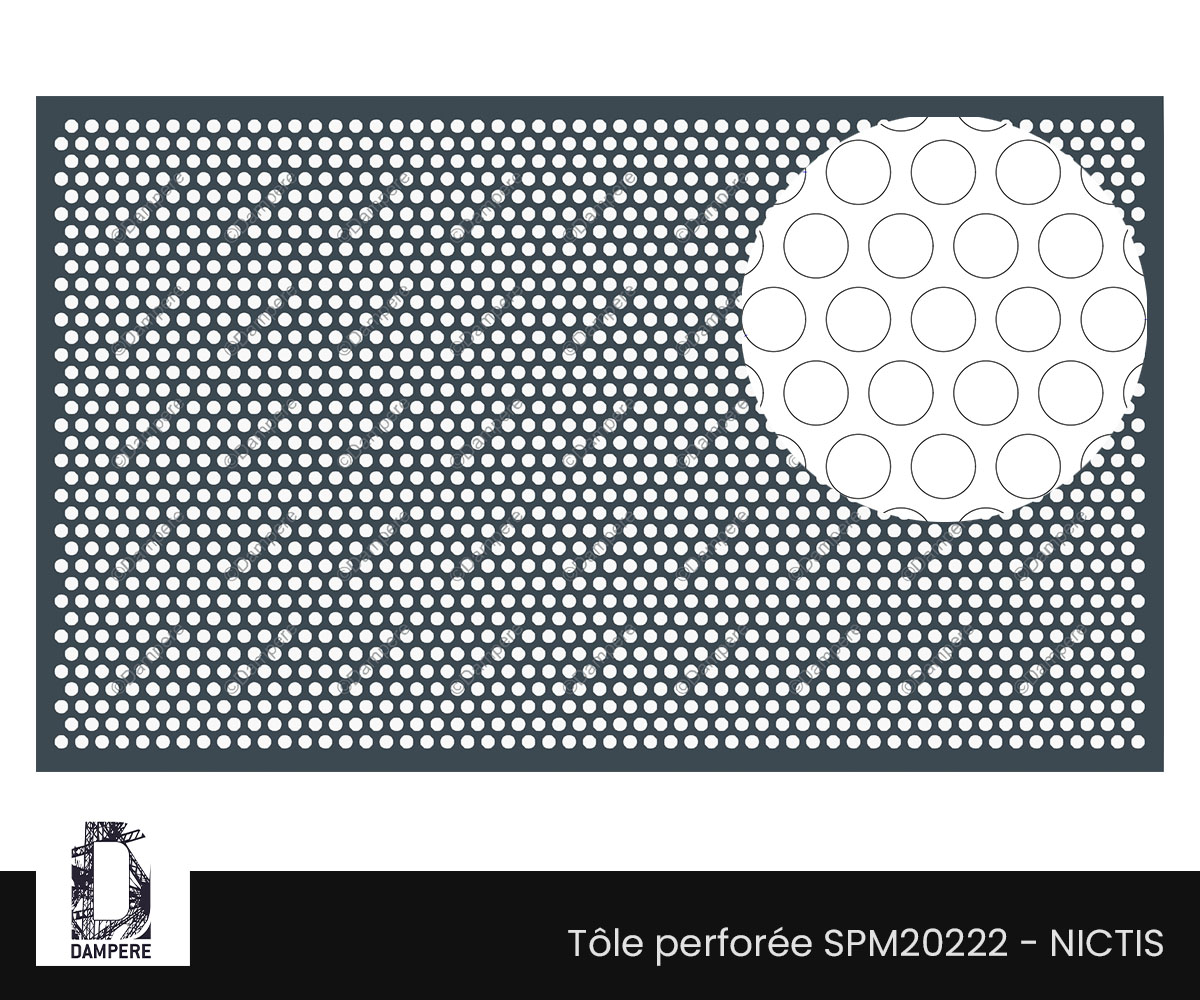 La tôle perforée R25T33 – Nictis associe légèreté visuelle et performance mécanique, idéale pour les applications nécessitant à la fois transparence, ventilation et solidité. Le motif perforé de rond de 25 mm en disposition quinconce confère à la tôle un rythme doux et fluide, tout en conservant une structure équilibrée et rigide.